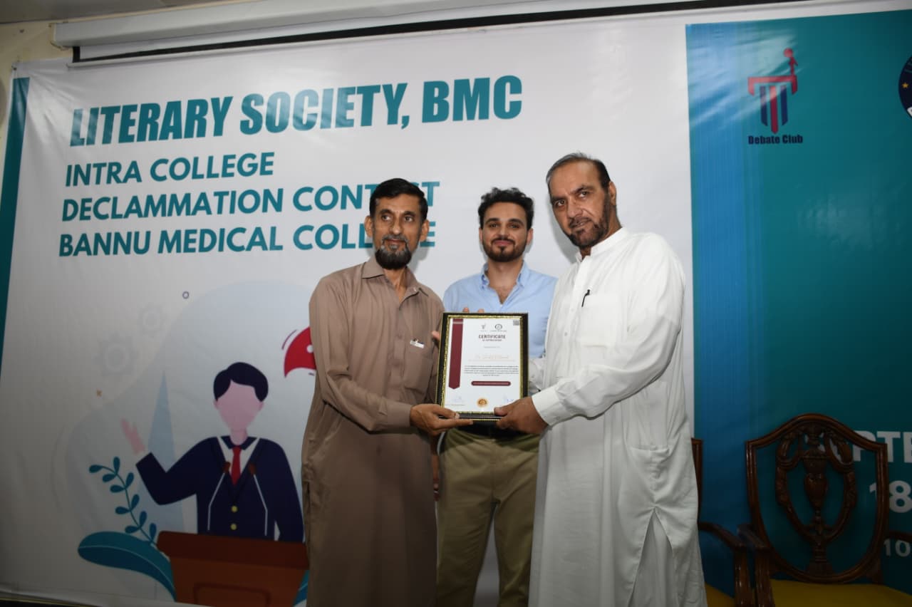 The Literary Society of Bannu Medical College successfully organized an Intra-College Declamation Contest to promote confidence, critical thinking, and effective communication skills among students. The event provided a vibrant platform for participants to express their ideas on meaningful topics, demonstrate their public speaking abilities, and engage in healthy intellectual competition. Students enthusiastically showcased their talent, creativity, and confidence, making the activity both inspiring and memorable. Such initiatives reflect the institution’s commitment to nurturing well-rounded medical professionals with strong academic, literary, and leadership qualities.